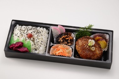 大正9年創業の肉屋が開発した自家製極ハンバーグをメインに盛り込んだお値打ち価格のお弁当です。